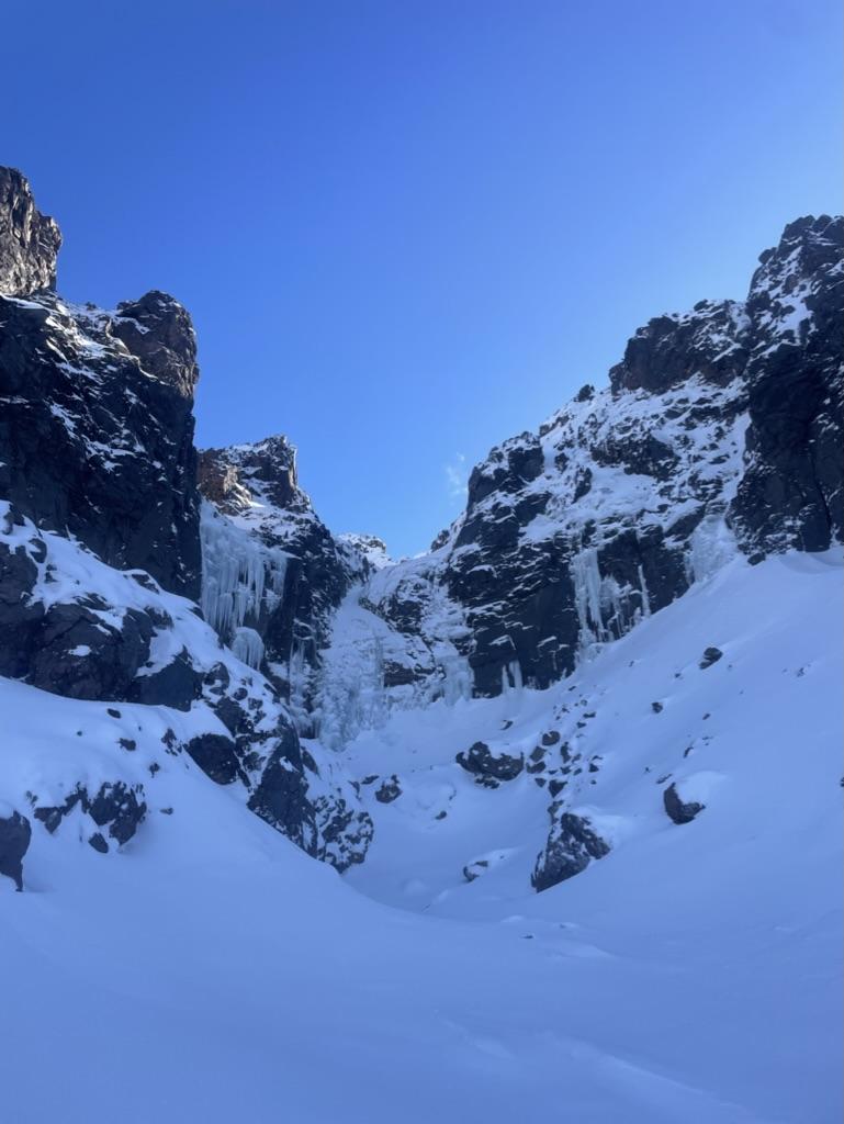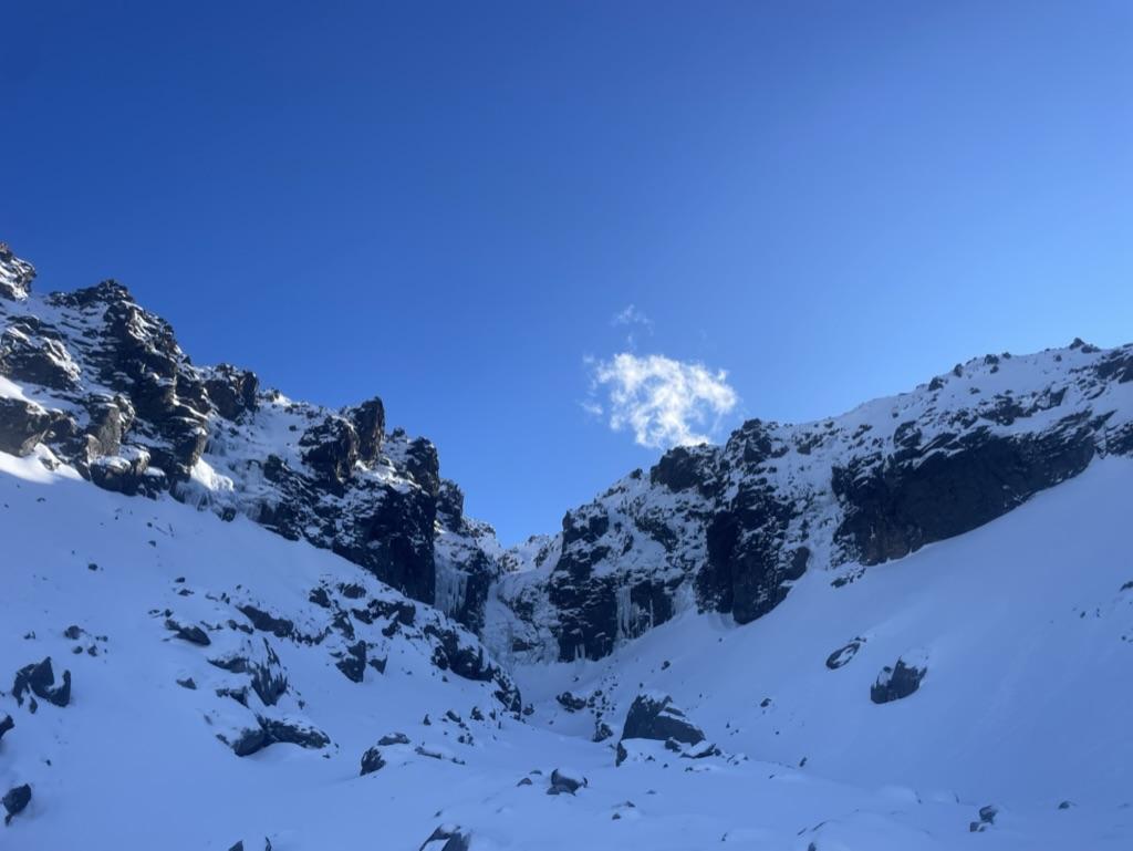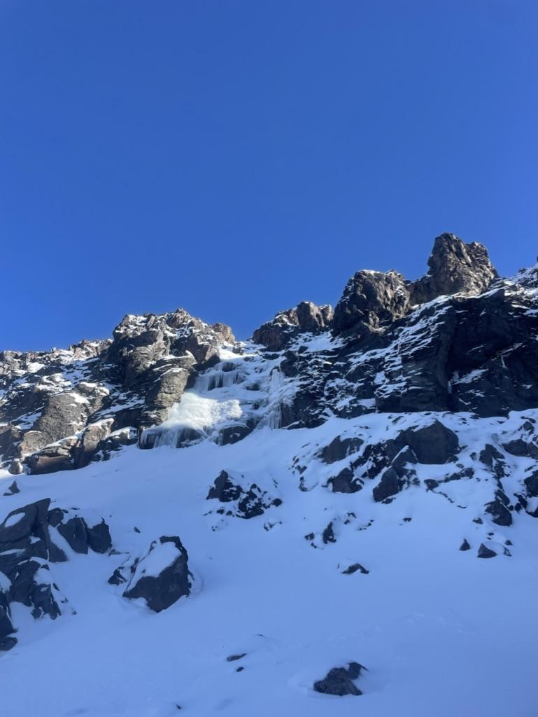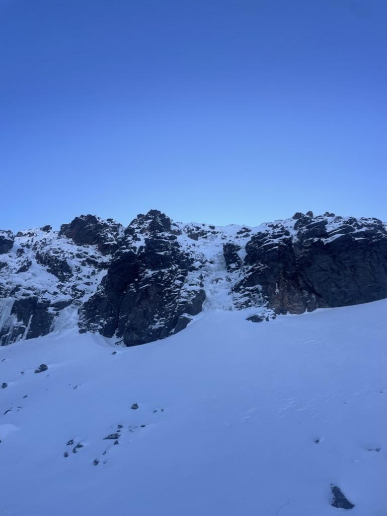 A remote feeling cirque of rock & ice away from the skifield but still easily accessible. Alot of potential for a variety of grades from WI2 and above, possibly some more challenging mixed routes within. Alike many other routes in the area, would be best climbed early winter season with a cold-snap.