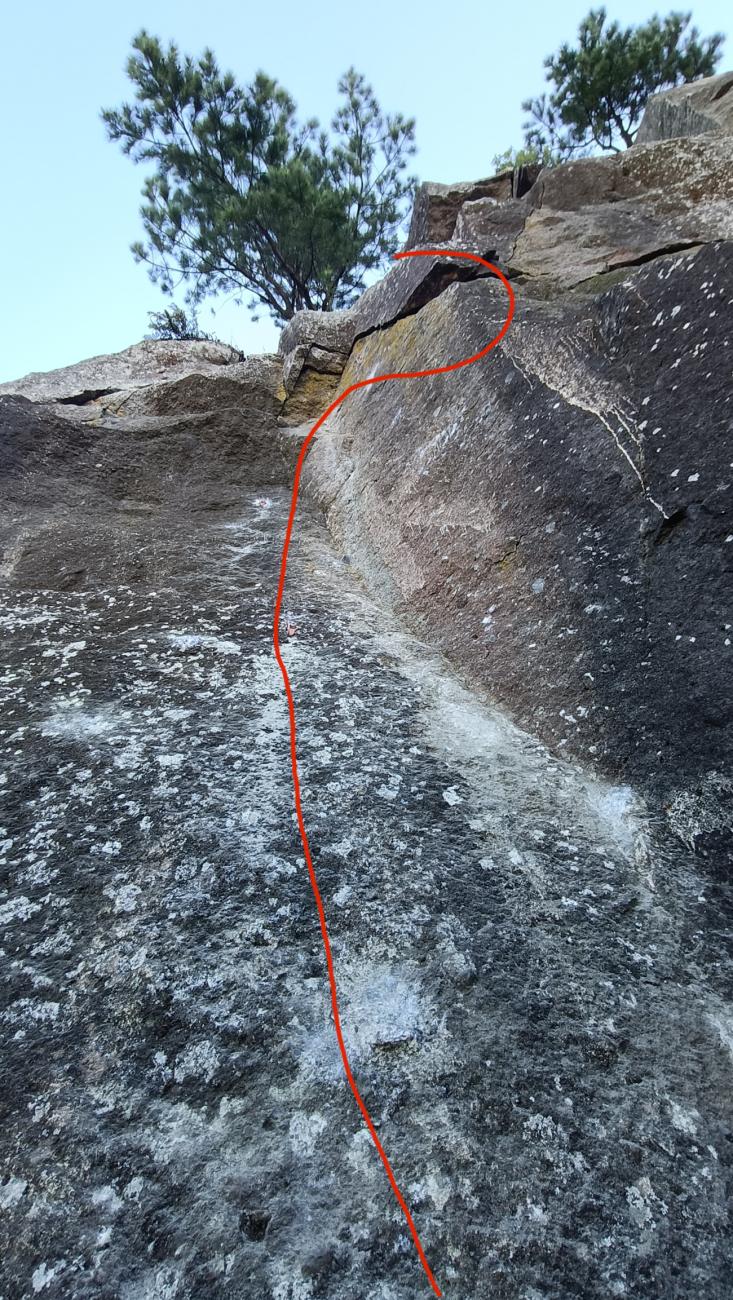 On the left side of the arete down low is a slab (halfway up Magilla Gorilla but accessed via the track). The big open book slab is Easter Blues Direct. Pinky and the Brain is the next slab 2m left again).