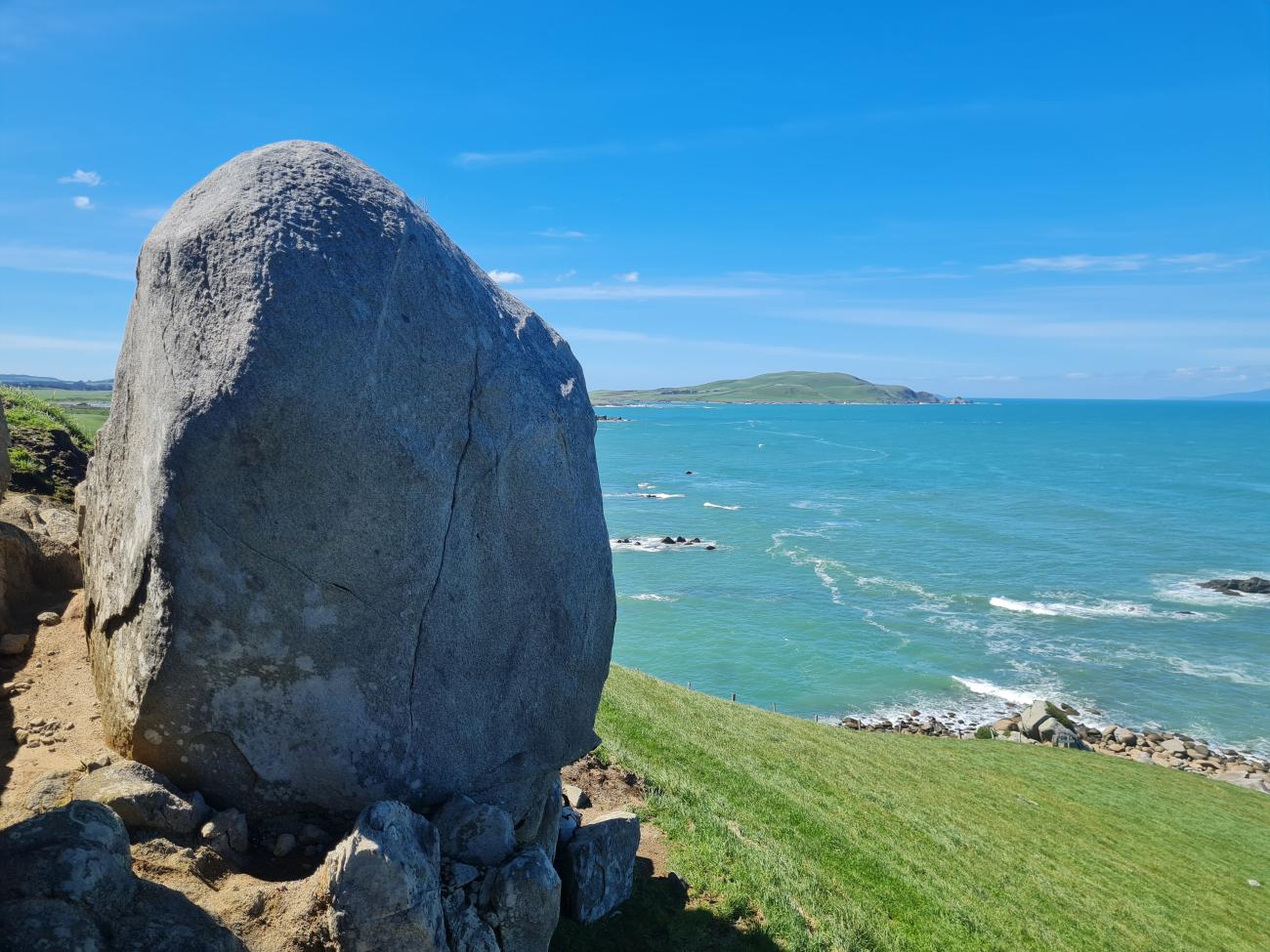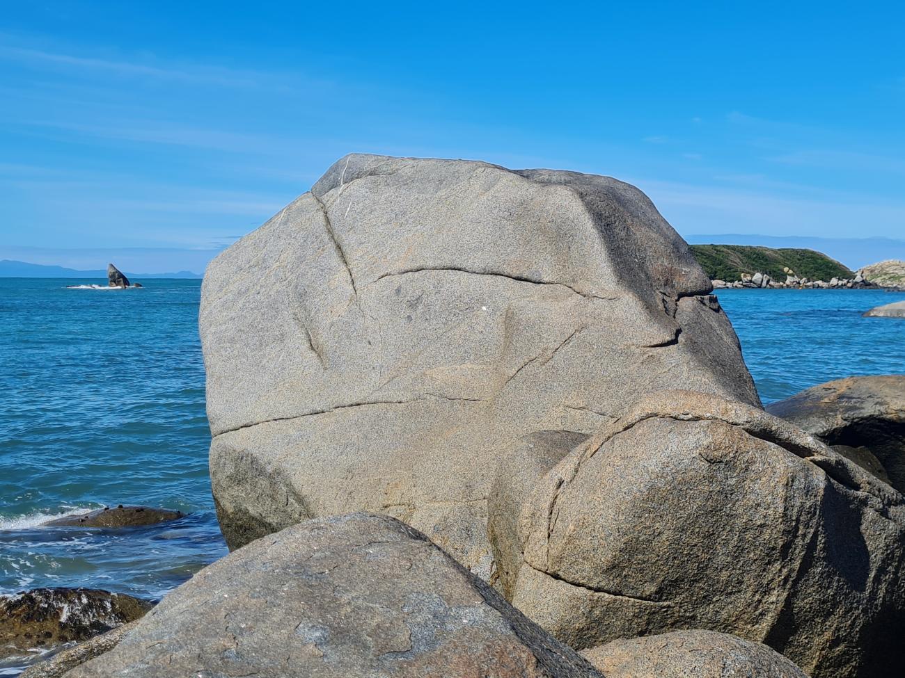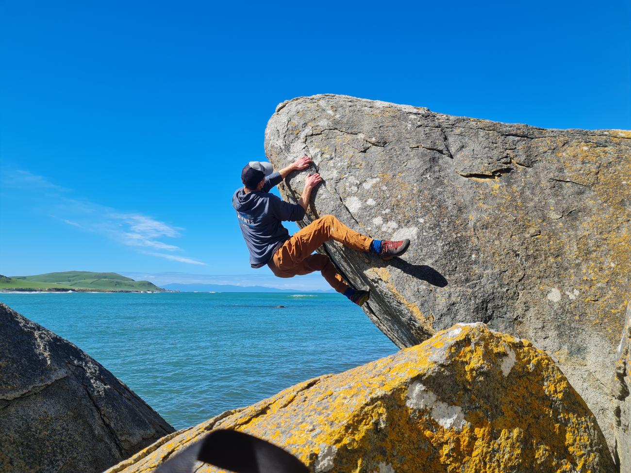 There is bouldering on both sides of Cosy Nook - a small clump just to the East, or scattered problems for kilometers along to the west wrapping around torwards Monkey Island. Either park at the bay you pass 600m before cosy nook - right under the road - and walk along the gorgous golden beach torward cosy Nooks to the closest giant stacked, golden egg-shaped boulders, or park at cosy Nook and walk on West. Outcrops and boulders with immaculate easy bouldering on hard, crystalline plutonic (granite & cousins), sometimes metamorphic (gneiss) rock stretch all the way around to Frentzys point on the other side of the hill/headland (boulders at that end are faster accessed from that end, from the road end near Monkey Island and aloing the shore, or leave a bike/car at each end and do the whole tour one way - a beaut half-day boulder/hike with amazing views to Rakiura and Fiordland. Generally, the bouldering is more sparse at the frentzys/Monkey Island end, although the bouldering that does exist is very nice - tall-ish outcrops, less small boulders, looking straight over the the Fiordland ranges.